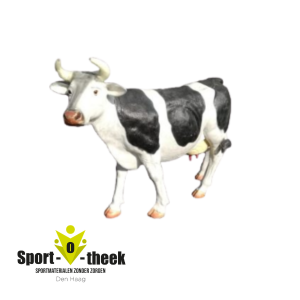 De koe wordt standaard met een melkkrukje geleverd zodat je haar kunt melken. Natuurlijk is het ook mogelijk om deze koe als decoratie op een feest te zetten of ter promotie in een winkel.